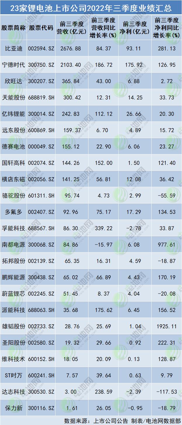 受原材料(liao)價格大漲及(ji)疫情等因素(su)影響,今年前(qian)三季度🚶♀️,锂電(dian)池業績雖不(bu)及锂資源上(shang)市公司業績(ji)亮眼,但多數(shu)企業也實現(xiàn)業績增長。