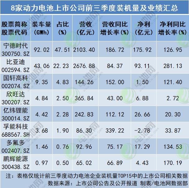 除(chu)中創新航未(wei)公開披露三(sān)季報,電池網(wang)注意到,動力(lì)電✔️池企業♌業(ye)績迎來盈利(li)修複。前三季(jì)度,8家動力電(diàn)池上市公司(si)營收總額🔴5777.49億(yì)元,平均營收(shou)722億元,其中,甯(níng)德時代、比亞(ya)迪營收超2000億(yì)元,甯德時代(dài)、國軒高科、億(yi)緯锂能、孚能(néng)科技🈚營收同(tong)比🈲增長翻倍(bèi),孚能科技營(ying)收同比增長(zhang)超3.3倍;利潤總(zǒng)額323億元,平均(jun)淨利40.38億元,其(qi)中,甯德時代(dài)🧑🏽🤝🧑🏻淨利超170億元(yuán),甯🔱德時代、比(bǐ)亞迪、國軒高(gāo)科、多氟多、鵬(péng)輝能源淨利(lì)增長同💰比翻(fān)倍,比亞迪❄️淨(jìng)利增長超2.8倍(bei)。